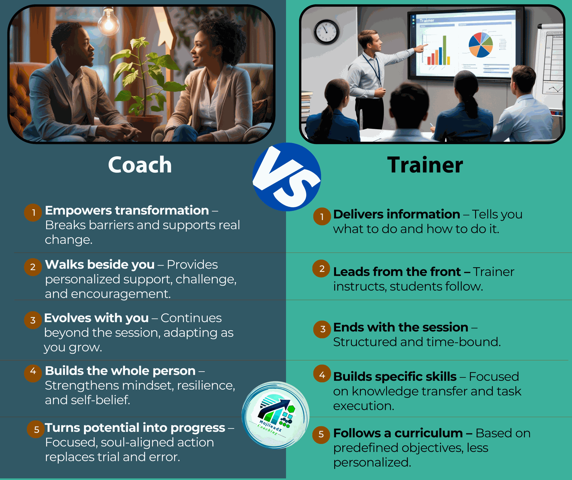 التدريب يُعطيك الأدوات، أما الكوتشينج فيُعلمك كيف تستخدمها بفاعلية. التغيير الحقيقي لا يبدأ بمعرفة جديدة، بل بوعي جديد يُحرر طاقتك.